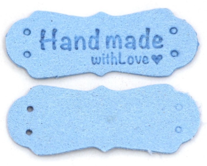 Cedulka Hand made with love, umělá kůže - modráSkladem14 Kč/ ks