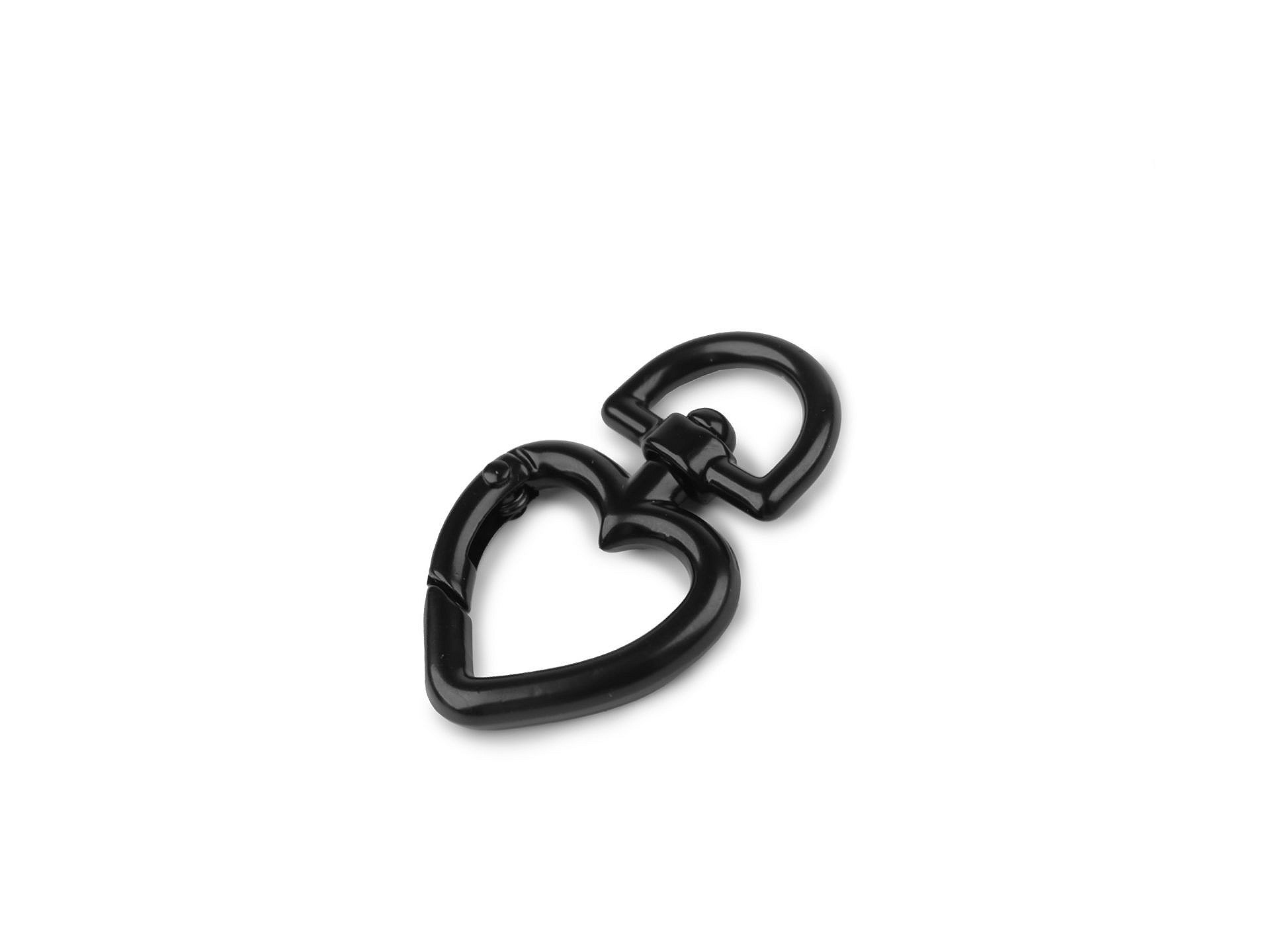 - Krásná kovová karabina ve tvaru srdce v černé barvě.