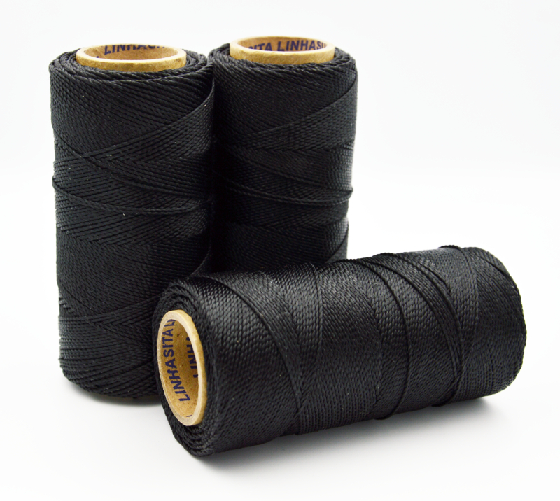 To nejlepší co potřebujete pro ruční tvoření šperků technikou micro macrame je tato voskovaná polyesterová nit Linhasita PRETO (černá) z Brazílie!