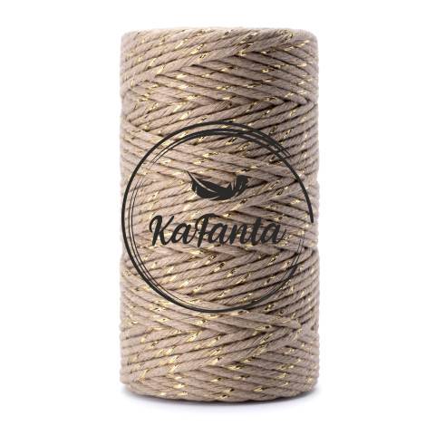 - Vysoce kvalitní macrame příze PRÉMIOVÉ kvality značky KaFanta v barvě dark beige se zlatou nitkou,