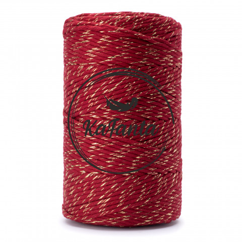 - Vysoce kvalitní macrame příze PRÉMIOVÉ kvality značky KaFanta v krásné tmavě červené barvě se zlatou,